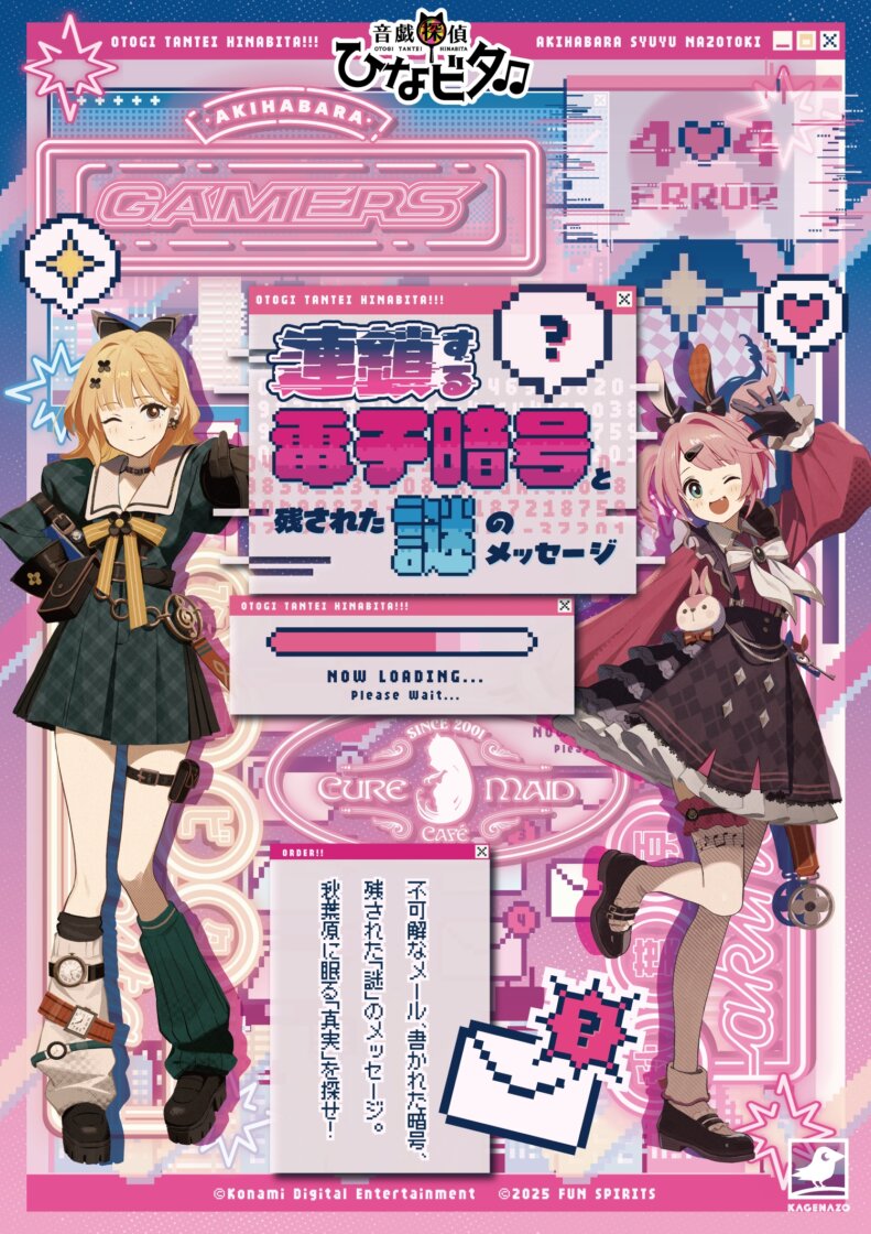 「謎解き×地域活性」をコンセプトに、日本中の地域に謎解きを仕掛け地域活性に貢献するクリエイティブ集団『KAGENAZO(運営:FUN SPIRITS株式会社、本社:東京都千代田区、代表取締役:日景太郎)』は、KONAMIのキャラクターバンドコンテンツ『ひなビタ♪』とコラボし、鳥取県倉吉市を舞台にした周遊型謎解きイベント『音戯探偵ひなビタ♫連鎖する電子暗号と残された謎のメッセージ』を2025年11月1日(土)よりスタートいたします。