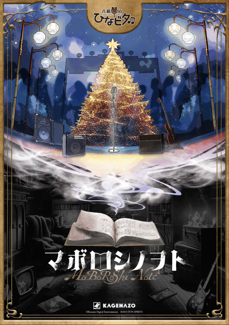 「謎解き×地域活性」をコンセプトに、日本中の地域に謎解きを仕掛け地域活性に貢献するクリエイティブ集団『KAGENAZO(運営:FUN SPIRITS株式会社、本社:東京都千代田区、代表取締役:日景太郎)』は、KONAMIのキャラクターバンドコンテンツ『ひなビタ♪』とコラボし、持ち帰り謎解き『音戯探偵ひなビタ♫マボロシノヲト-MABOROSHI NOTE-』を2025年11月1日(土)より販売いたします。