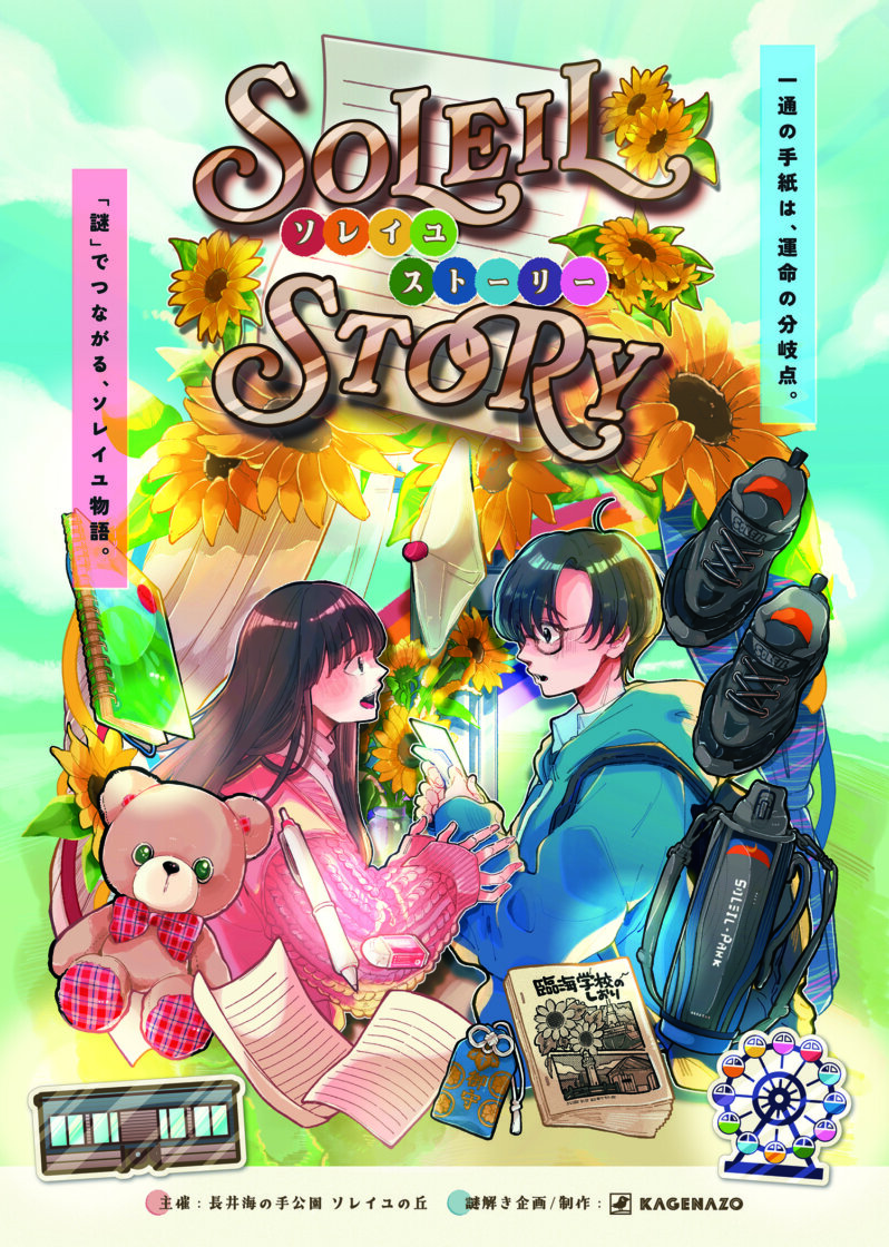 「謎解き×地域活性」をコンセプトに、日本中の地域に謎解きを仕掛け地域活性に貢献するクリエイティブ集団『KAGENAZO』は、神奈川県横須賀市にある『長井海の手公園 ソレイユの丘』とコラボし、長井海の手公園 ソレイユの丘園内各所を舞台にした周遊型謎解きイベント『Soleil STORY』を2025年12月24日(水)よりスタートいたします。
