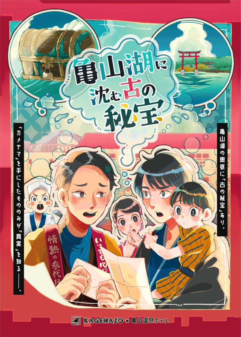 亀山温泉ホテル周辺のスポットや館内にしかけられた謎を解きながら遊ぶ回遊型謎解きゲームです。