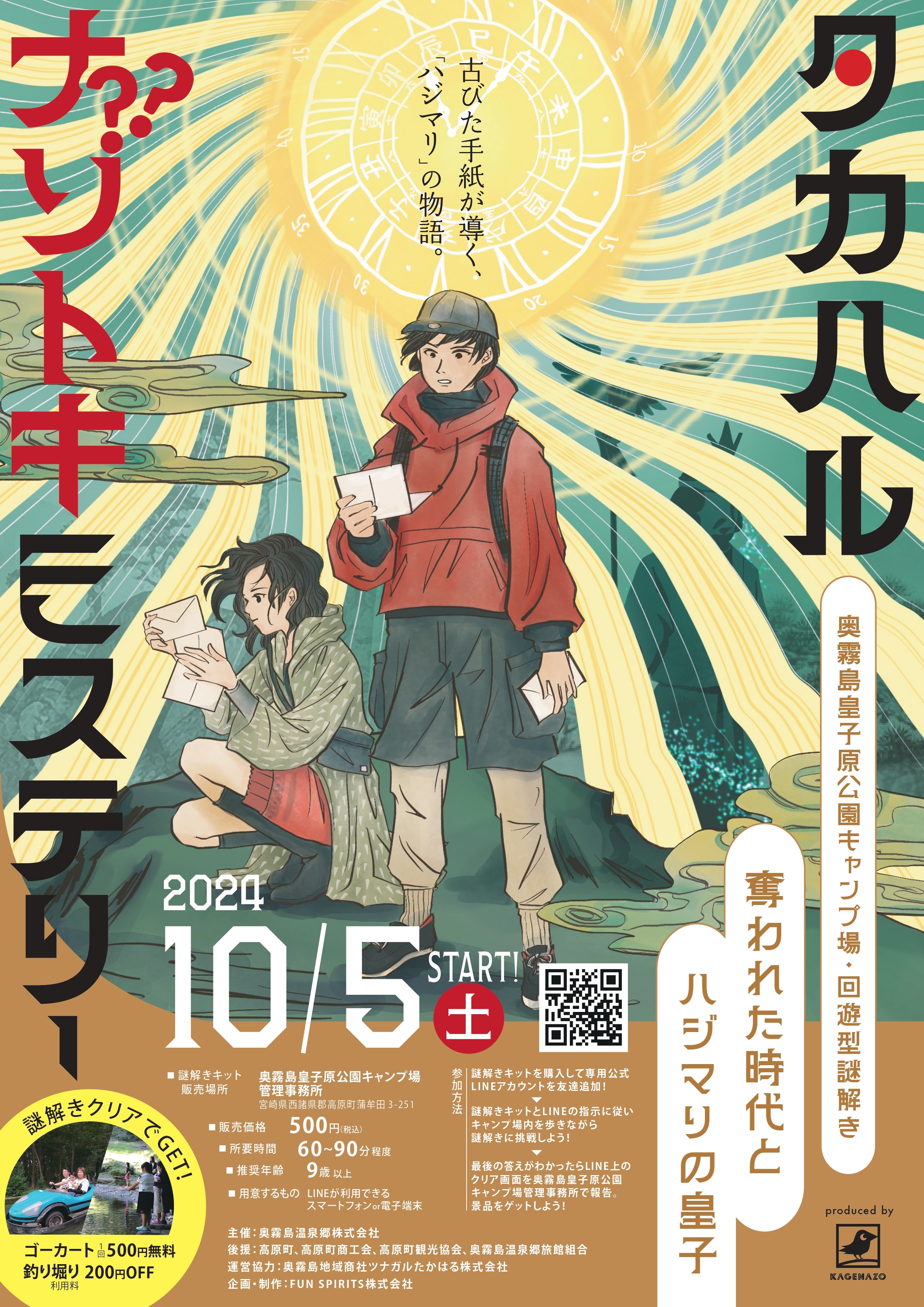 周遊謎解きゲーム『タカハルナゾトキミステリー〜奪われた時代とハジマリの皇子〜』を2024年10月5日(土)から宮崎県高原町の奥霧島皇子原公園キャンプ場で開催します!⛺️💡